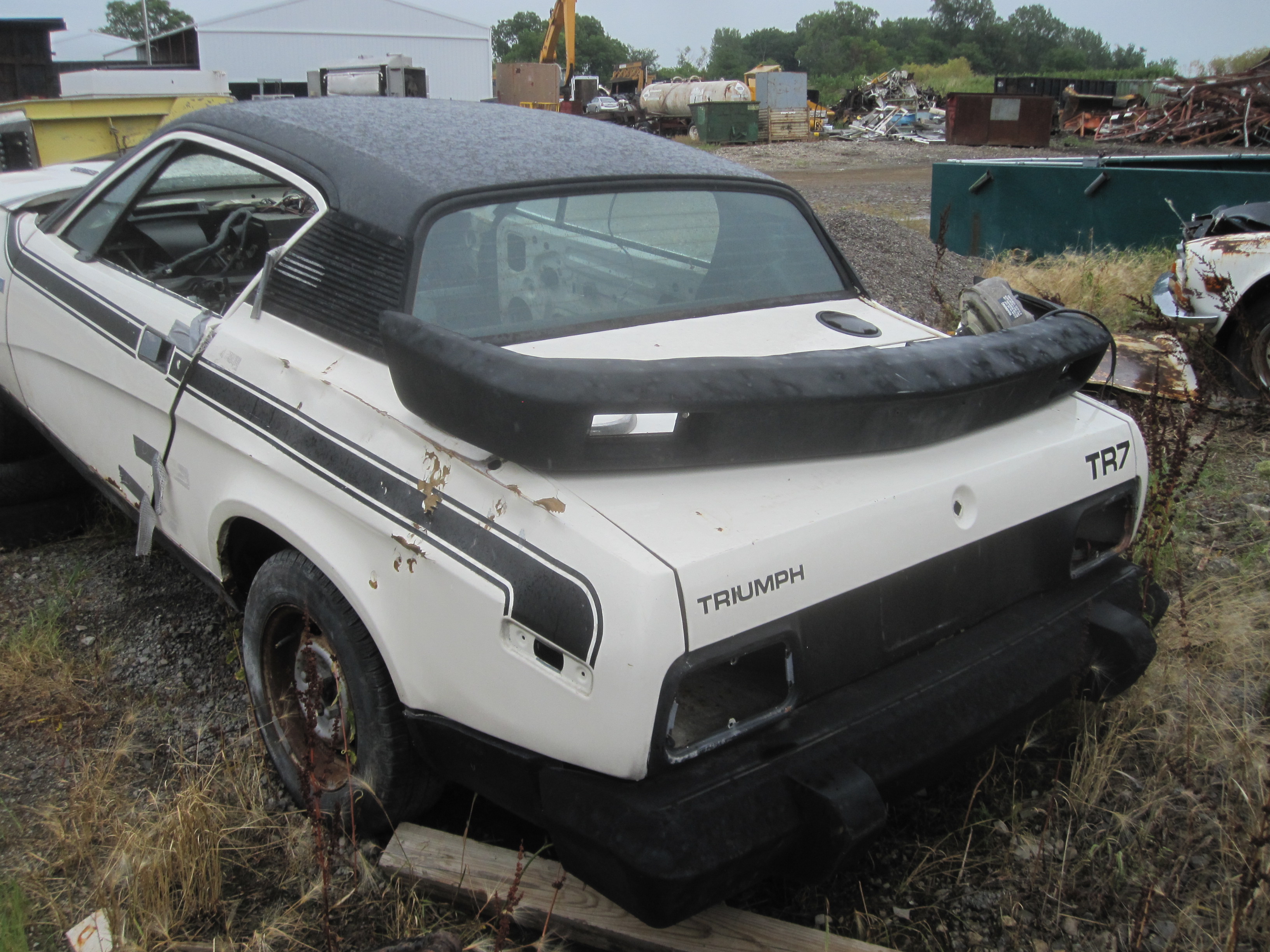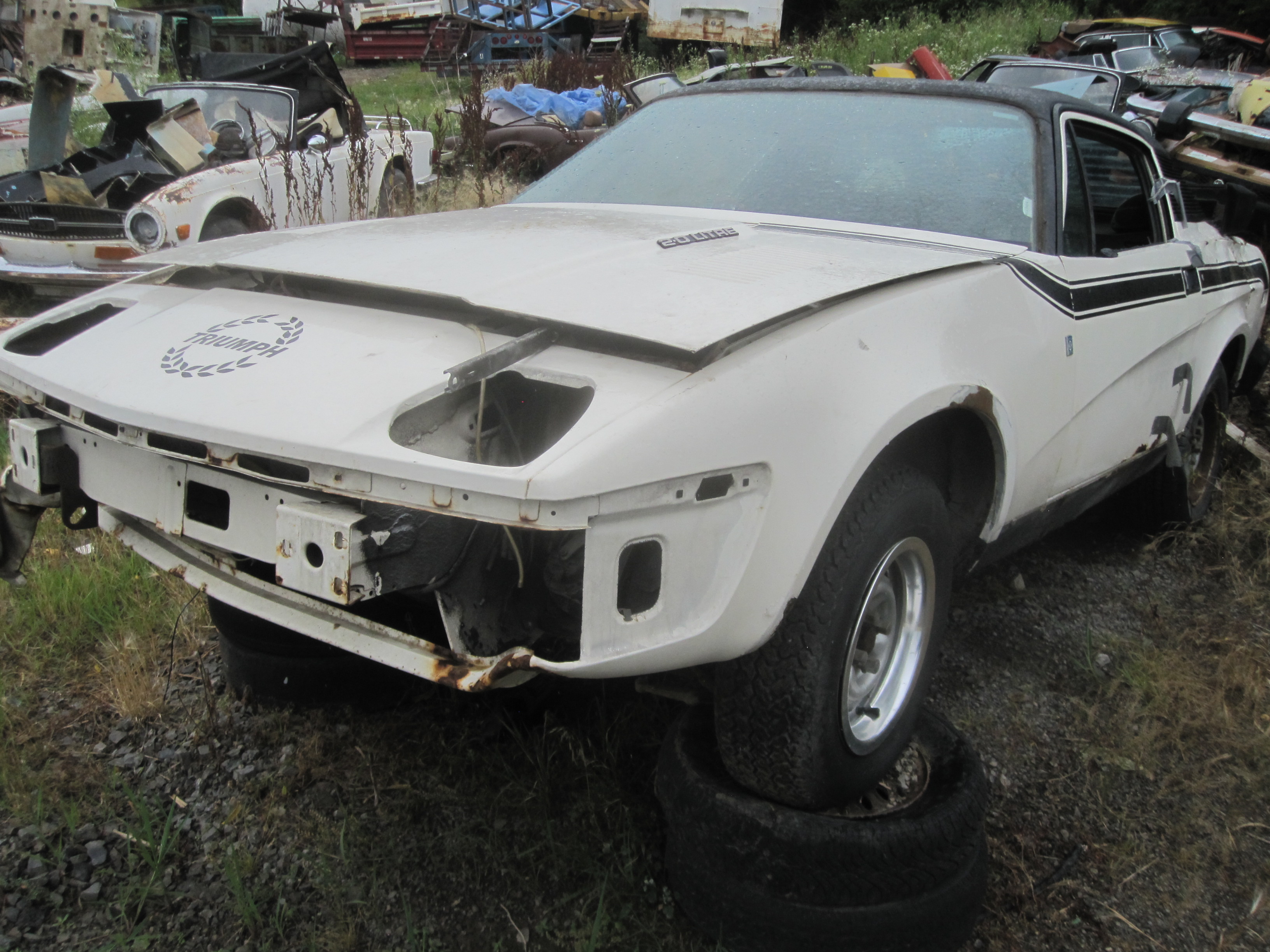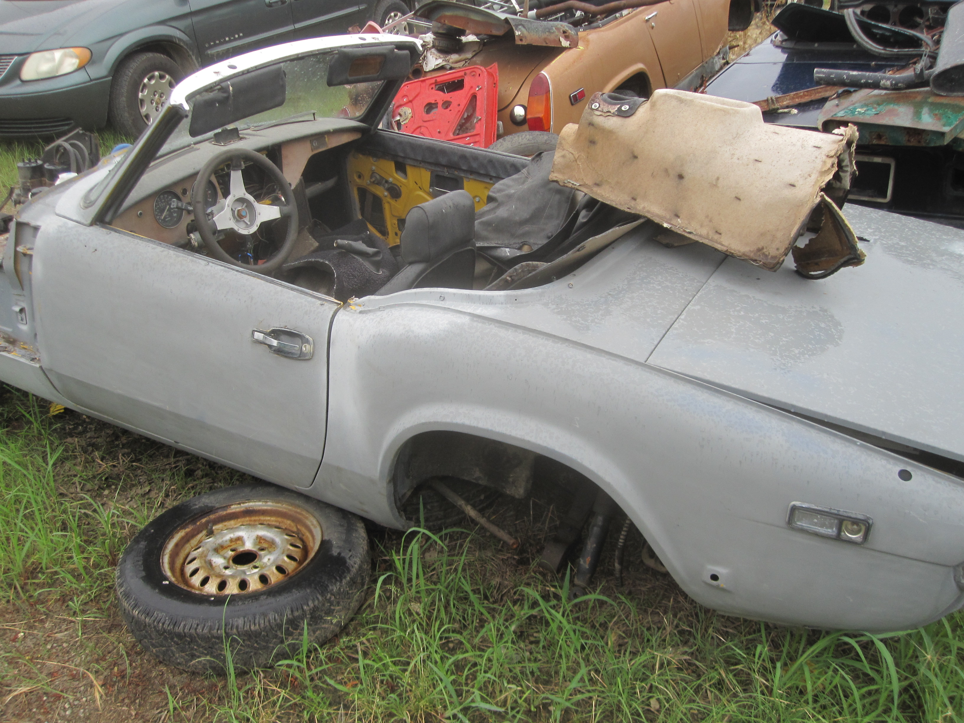 60K miles, 4 speed transmission. Engine apart, no cylinder head, carbs or manifolds. Body fairly solid. Serious dents on left rear fender. Desirable lighter front bumper compared to later cars. Front headlamp panel is good. No interior or dash. Have a NICE set of white "Spoker" wheels.